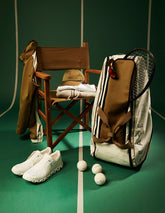 The tennis bags - essential elements of the kit - express the perfect hybridization of advanced materials like DyneemaⓇ and fine Italian leather craftsmanship.