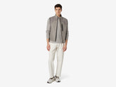 The ELLEN SWEATSHIRT is made in soft virgin wool and nylon blended fabric. Wool favours thermoregulation and offers maximum comfort, while nylon increases its durability. Sports and urban look with regular fit. Main features: raised Ellen style collar with Alcantara® binding and hidden button fastening in precious certified horn – made in compliance with animal protection norms, front chest pocket. Garment and fabrics are made in Italy by environmental-conscious suppliers.